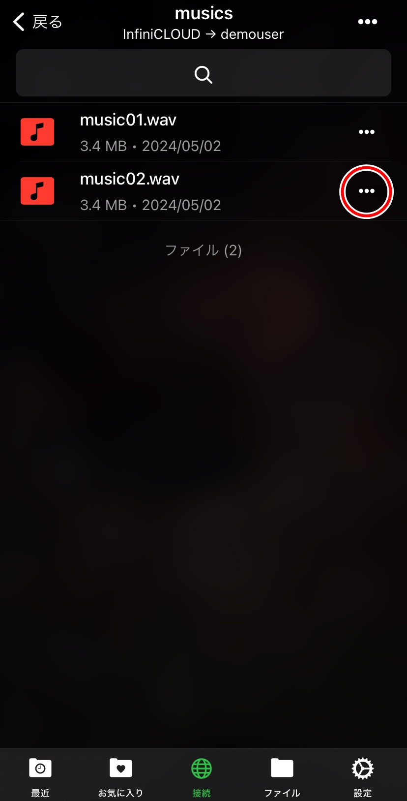 ※外部アプリからのInfiniCLOUDへの接続を有効、または無効にするには、マイページで外部アプリ接続の設定をする必要があります。詳細はこちらをご覧ください。